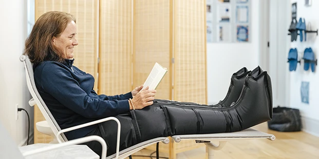 Speed up muscle recovery by flushing the byproducts of muscle metabolism from workouts with Normatec compression sleeves.